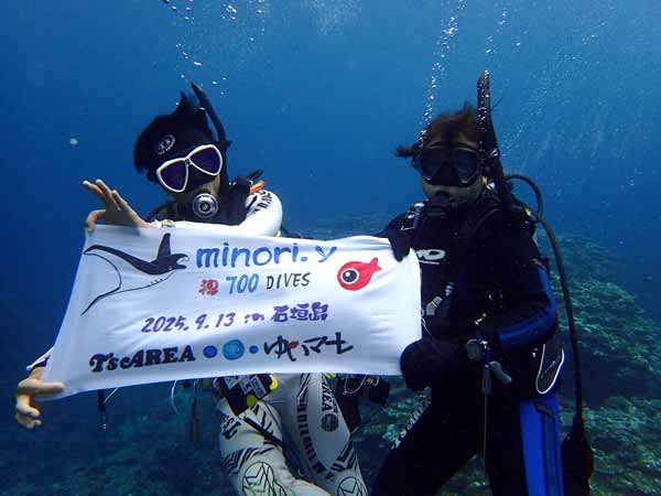 | 今回の9月のビッグツアーは、八重山諸島の「石垣島」に行ってまいりました。 時は9/12金。我々を乗せたANA1747便が定刻の9:25に関西空港を飛び立ち、石垣空港に到着して、今回の「T's AREA石垣島ツアー」も始まり始まり!です。 この日は直行便だったので11:55に石垣空港に着いたので、市内でお昼ご飯を食べた後ホテルにチェックインしました(^^) ![]() その後、市内にお買い物に行ったりお昼寝したりシャワーを浴びたりなど各自ゆっくりしていただいた後、夕方みんなで市内の「てっぺん」という居酒屋さんに晩ご飯を食べに行きました。 「てっぺん」で美味しい料理をいただきながら次の日から始まる石垣島でのダイビングのお話に花を咲かせてこの日は少し早めに切り上げました (^^) ![]() 9/13翌朝起きてみるとお天気は晴天、そして八重山ブルーの海を目の前にして、われわれのテンションもどんどん上がっていきました! v(^ー^)v 素晴らしく美しい八重山ブルーの海と、今回お世話になった「ゆいマーレ」のボスのめだかさん(^^) と言うことで石垣島での記念すべき初ダイブは大崎の「タートルリーフ」 ここは石垣島の西側にあるポイントで名前の通りウミガメが多く見られるところです。お約束通大きなりアオウミガメが我々を出迎えてくれました。そして砂地にはガーデンイールがゆらゆらと体を振って「いらっしゃ~い」と出迎えてくれました(^^) ![]() 大きなアオウミガメのお出迎えです(^^)(T永さん撮影) ![]() ガーデンイール(チンアナゴ)も(^^)(M田さん撮影) ![]() カクレクマノミも(^^)(O橋さん撮影) 2本目は「崎枝ビッグアーチ」 ここも石垣島の西側にある地形が面白いポイントで、水路やアーチやホールが入り組んでいて、そこに差し込んでくるお天道様の光がとっても幻想的でした(^^) ![]() ![]() ホールの中は天井の青い穴から差し込んでくる光のカーテンに美しくて思わず息を呑みました(^^) ![]() ![]() 「ビッグアーチ」の中にいっぱいいたソリハシコモンエビ(上)とアオギハゼ(^^) ![]() お約束のウコンハネガイも(^^) 3本目は「石崎マンタシティ」 ここは石垣島の北側にあるポイントで、真ん前にクラブメッド(地中海クラブ)があるところです。ここにマンタが身体をクリーニングして貰いに集まってくるのです。 我々がそのクリーニング場所のサンゴ根にたどり着くと既に大きなマンタがゆっくり旋回して我々にその美しい巨体を最後まで惜しげもなく見せてくれました(^^) ![]() (T永さん撮影) ![]() (M田さん撮影) ![]() (Y田さん撮影) ![]() ![]() このダイビングで、Y田さんが見事700ダイブを達成されました!! Y田さん、本当におめでとうございます!!ヽ(^o^)丿♪ これからも感動と癒しを求めて色んな海にご一緒させて下さいね~!!(^^♪ |