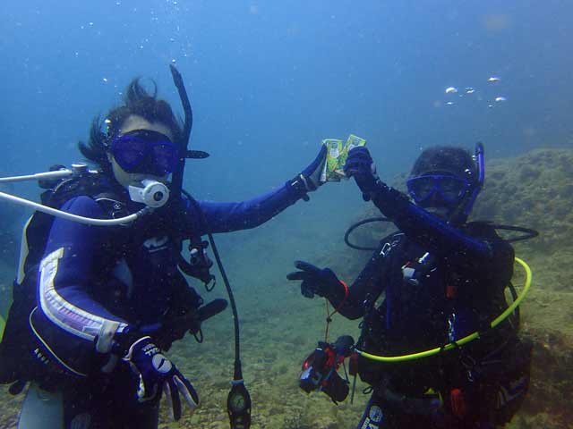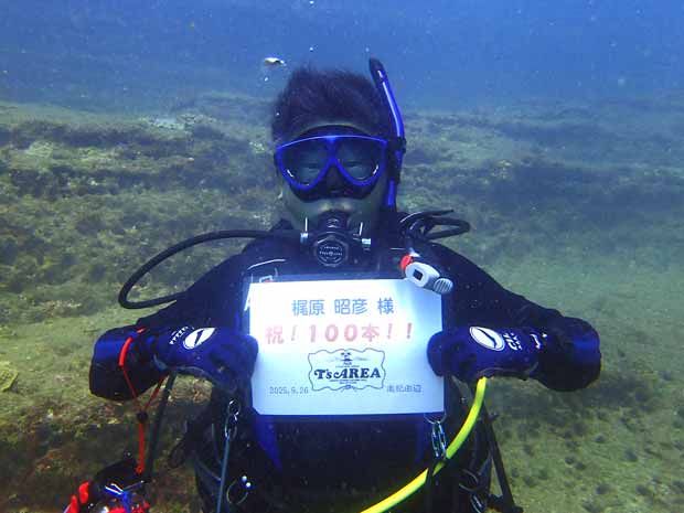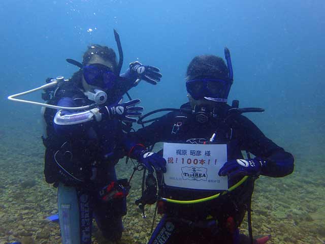 今回は平日の金曜日に南紀田辺に日帰りでアドバンスの講習とディープSPとファンダイブに行ってまいりました!(^ー^)> この日はお天気は最高で、海に飛び込むと海が青くてメッチャ気持ち良い〜!そして海の中の生物がいっぱいで今回もメッチャ癒される〜!でした (^^)v と言うことでこの日は「ショウガセ」でアドバンスのディープとディープSP、「南部出しアーチ」でアドバンスのボートの講習を兼ねて楽しんできました。 そして今回は偉大な黒潮が「冷水塊」を蹴散らしてくれて、すっかり夏の海に戻してくれて水温は26〜28度もあったのでウエットスーツで快適にそして気持ち良く潜って来ましたよ〜(^^) どういう風に快適に気持ち良かったのか?癒されたのか?「百聞は一見に如かず」、この下に写真を貼り付けたのでぜひ観て下さい!m(^−^)m ![]() さぁ!潜るでぇ〜!!と張り切って出港しました(^^)v アドバンスの講習生のH田さん(右)とディープSP講習生のK原さん(^^) 1本目はディープダイビングの講習で「ショウガセ」 ![]() ![]() お二人はサクサクとディープ講習の課題をこなしてくれました(^^) ![]() ダイブコンピューターで潜水時間をしっかり管理中のH田さん(^^) ![]() ディープダイビングも余裕のK原さん(^^) ![]() 相変わらずドロップオフのソフトコーラルが美しかったです(^^) ![]() そのドロップオフに乱舞するコガネスズメダイも群れ(^^) ![]() ![]() ![]() 根の上では相変わらずクマノミやミツボシクロスズメダイの成魚や幼魚が賑やかでした(^^) ![]() そのイソギンチャクにいたイソギンチャクエビ(^^) 2本目は「南部出しアーチ」でH田さんのアドバンスのボート講習とK原さんの100ダイブ達成記念お祝いダイブをやりましたv(^v^)v ![]() ![]() アドバンス講習生のH田さんが上手に僕たちを撮って下さいました!(^^) ![]() K原さん、100ダイブ達成!本当におめでとうございます!! これからも色んな海に感動と癒しを求めてご一緒させて下さいね〜!! m(^−^)m ![]() そして水中でジュースで乾杯です(^^) ![]() そのあと海の中で上手にジュースを飲んで下さったK原さん(^^) ![]() ![]() その後ファンダイブで名物のアーチを通過中のお二人(^^) ![]() アーチを通過後沖縄の県魚のグルクン(タカサゴ)に囲まれたH田さん(^^) ![]() ![]() ![]() クマノミの幼魚を撮影中のK原さん(^^) ![]() 岩の隙間にミナミハコフグの幼魚が(^^) ![]() ![]() サンゴの隙間にアシビロサンゴヤドリガニが(^^) ![]() ![]() 根の上は相変わらずソフトコーラルとソラスズメダイとキンギョハナダイが美しかったです(^^) ![]() それらを撮影中のK原さん(^^) ![]() と、メチャ余裕のH田さん(^^) ![]() ![]() 最後は根の上のマツバギンポ(上)とコケギンポと一緒に安全停止をして皆で安全に浮上しました(^^) ![]() K原さん100ダイブ達成おめでとうございます!! そしてPADIディープダイバー認定おめでとうございます!!ヽ(^o^)丿(^^♪ ![]() H田さんアドバンスのディープとボートの講習お疲れ様でした! とってもお上手でしたよ〜!!v(^^)v 残りの講習も今回みたいに楽しみながら一緒に練習しましょうね〜!!(^^♪ と言うわけで、今回も心身ともにエエように癒されてしまいました(^−^) このように、これから近場の海はこんな感じのメッチャ気持ち良いベストシーズンに突入です。 ぜひみなさん近々このメッチャ気持ち良い癒しの海にご一緒させて下さいね〜!!(^−^)> |