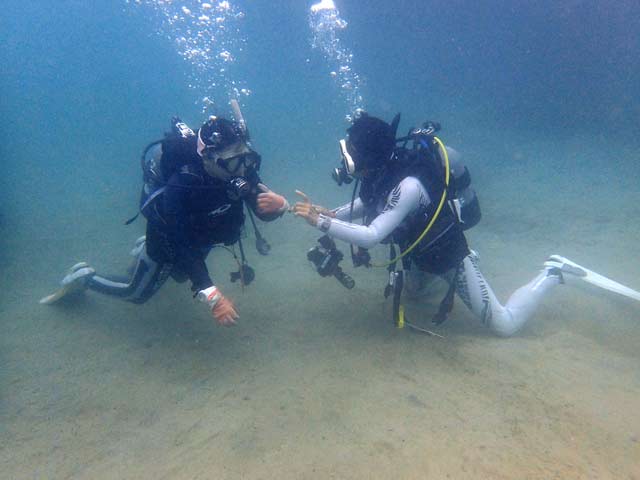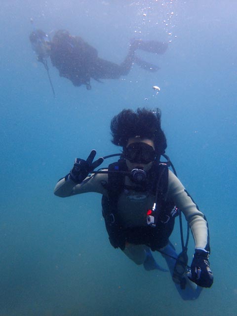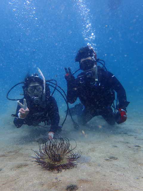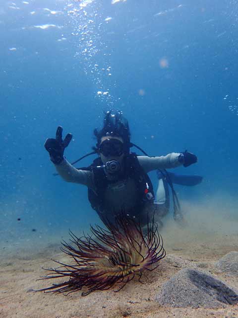 | 今回は、お泊りで南紀日高にオープンウォーターダイバーの講習に行ってまいりました(^ー^)> 土日共にはお天気は曇りがちだったのですが、透視度が良くってメッチャ気持ち良い〜!!でした(^^)v 今回のオープンウォーターダイバーの講習生のH田野さんご夫婦とM上さんがとってもお上手だったので、講習の内容はすこぶる順調に進んで、たくさん余った空気と時間を、楽しいファンダイビングに当てることが出来ました。 そしてその講習後のファンダイブでは色んな南紀の水中生物に出会えたので、3名様にとっても喜んでいただけました。 どんな感じだったか?この下に写真を貼り付けましたのでぜひ見て下さい (^^) 今回は2日間の3ダイブは日高の「方杭ビーチ」でビーチダイビングでした (^−^) ![]() さぁ!潜るでぇ〜!!と、右2人目からH田野さんご夫婦、M上さん、DM候補生のN村さん(^^)/ 海洋講習中の3名様(^^)v ![]() ![]() H田野さんご夫婦(^^) ![]() M上さん(^^) ![]() ![]() H田野さんご夫婦(^^) ![]() M上さん(^^) 講習の内容をすこぶる順調にこなして下さった3名様(^^)v たくさん余った空気と時間を使って経験と楽しみのためのファンダイブです (^^)v ![]() 余裕のH田野さんご夫婦(^^) ![]() 同じく余裕のM上さん(^^) ![]() ![]() 三名様で記念撮影!上からH田野さんご夫婦、M上さん(^^) そして3名様がとってもスムーズに講習内容をこなしていただいたので、日高の海をい〜っぱい楽しんでいただきました(^^) その時出会えた日高の生物達は、 ![]() ハタタテダイの幼魚(^^) ![]() よく似たツノダシ(^^) ![]() トゲチョウチョウウオ(^^) ![]() ブルーが鮮やかだったソラスズメダイ(^^) ![]() 黄色いヒゲで餌を探していたヨメヒメジ(^^) ![]() 角がカッコいいコンゴウフグの幼魚(^^) ![]() H田野さんの奥様が見つけてくれたアオウミウシ(^^) ![]() H田野さんのご主人が見つけてくれたマゴチ(^^) 2日目の2本目は3名様がお上手だったので、ボートダイビングで「方杭崎」に海洋講習を締めくくりました(^^)v ![]() さぁ!ボートダイビングで楽しむで〜!とM上さん(^^) ![]() このダイビングにH田野さんの奥様のお母さんのY山さんと友人のN部さん(左)が一緒に潜ってくれました(^^)v ![]() ![]() 落ち着いて余裕で潜降の3名様(^^) ![]() 余裕でボートダイビング中の3名様(^^) ![]() 親子様で記念撮影(^^)v その後のファンダイブで色んな海の生物に出会えました(^^) ![]() イソギンチャクにクマノミが(^^) ![]() 同じくミツボシクロスズメダイ(^^) ![]() アカオビハナダイがいっぱい群れていました(^^) ![]() キリンミノが(^^) ![]() アオヤガラが(^^) ![]() コロダイの若魚(^^) ![]() オニカサゴが(^^) ![]() 岩の隙間にオトヒメエビのカップルが(^^) ![]() ラッパウニにゼブラガニが(^^) (スタッフ岩井撮影) ![]() ウミシダにオオウミシダトウマキクリムシが(^^) (スタッフ岩井撮影) ![]() サンゴの穴にテンクロスジギンポが(^^) (スタッフ岩井撮影) ![]() ![]() 上からH田野さんご夫婦、M上さん。 PADIオープンウォーターダイバー認定!本当におめでとうございます!! ヽ(^。^)ノとってもお上手でしたよ〜!! さぁこれからは日本はもちろん世界の色んな海にご一緒させて下さいね〜!! (^ー^)>♪ 2日間の海洋講習、本当にお疲れ様でした!!m(^−^)m |