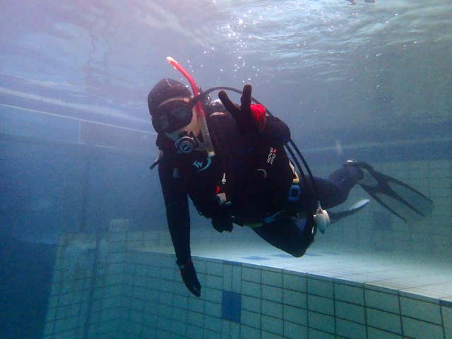 10/20の月曜日にオープンウォーターのプール講習に行ってまいりました (^ー^)> 今回の生徒さんは下の写真のA井さんお一人だったので、器材のセッティングやエントリーのやり方、基本的なダイビングスキルの練習などを、A井さんのペースでゆーっくり&じーっくりと講習させて頂いたので、とっても上手になられましたv(^ー^)v 今度は海の講習ですがとっても楽しみですね!(^^) 海はプールと違って海の生物がいっぱいでとっても楽しいですから、一緒に楽しみながら練習しましょうね!(^ー^)> 下の写真はプールの練習の時の写真ですが、A井さんの自信に溢れた、そして上手になられた潜りっぷりを見てあげて下さい!(^^) メッチャ余裕でしょ!(^ー^)v やっぱり教え方が上手いのかなぁ?(^^) いやいや教え方もさることながら(まだ言いますか(^^)) 本当にお上手でした(^−^)> ![]() ![]() 上手にレギュレーターのリカバリーとクリアを練習中のA井さん(^^) ![]() ![]() A井さん、とってもお上手でした!(^^)v 今度の海の講習は、めーいっぱい楽しんで頂きますよ〜!!(^−^)/ |