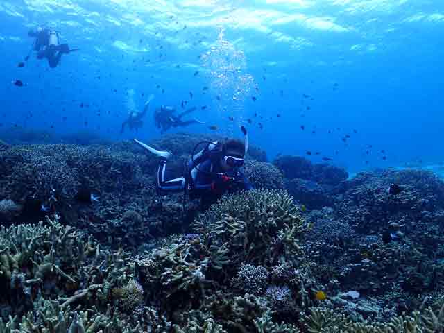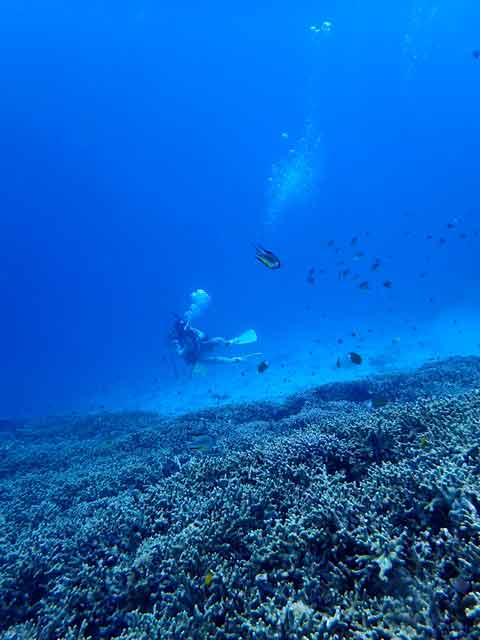ポイント名の通りユビエダハマサンゴやスギノキミドリイシなどエダサンゴの仲間の群生がまるで草原のように広がりとっても気持ちが良かったですよ(^^)v