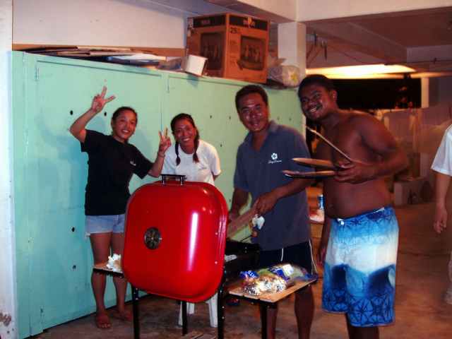 最後の日はデイドリームのショップでバーべQパーティの御招きを請けました。(右の写真です。)スタッフの方が僕達のためにお肉やらシーフードやらトウモロコシやら一生懸命焼いてくれたので、本当に美味しかった〜!特にたこの塩コショウ焼きが美味しかったなぁ。デイドリームの皆さん、ご馳走様でした!!m(--)m