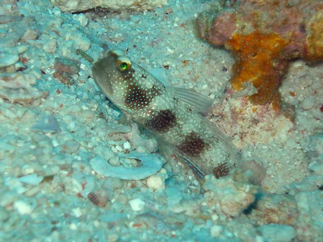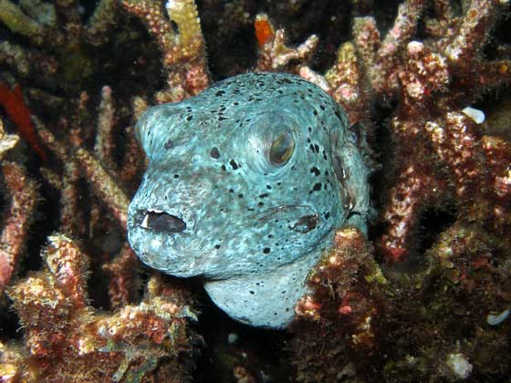 船の真下の浅いサンゴ礁に潜ったのですが、面白かったのはあちこちでコクテンフグがサンゴの上に乗っかって寝ているのです。