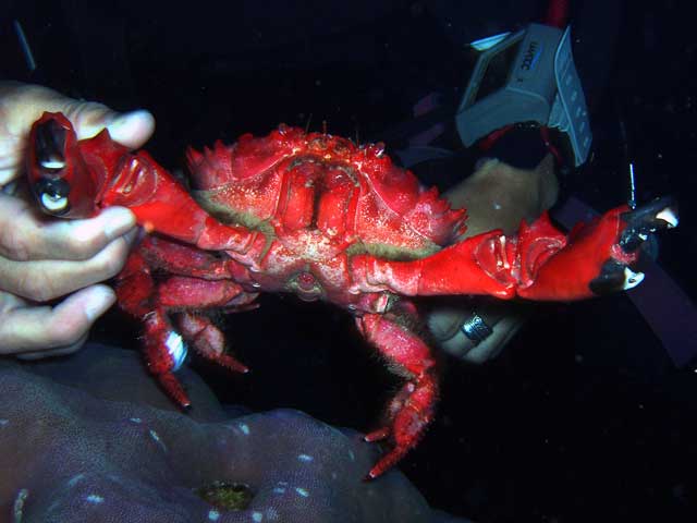 そうそう大きなオオアカヒズメガニも潜んでいましたよ。