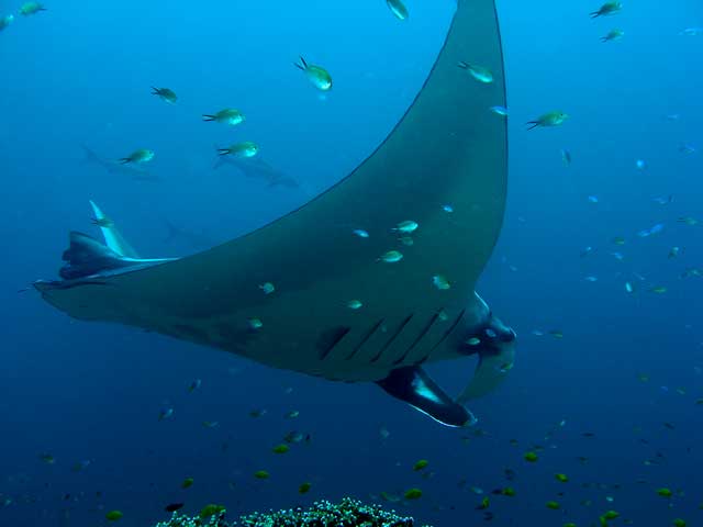 彼らにうっとりしていると、今度はマンタの登場です。それにしても大きかったなぁ!石垣島でみるやつの1,5倍くらいありそうで本当に迫力がありました。こいつは初日から縁起がいいなぁ!とみんな満足顔で浮上しました。