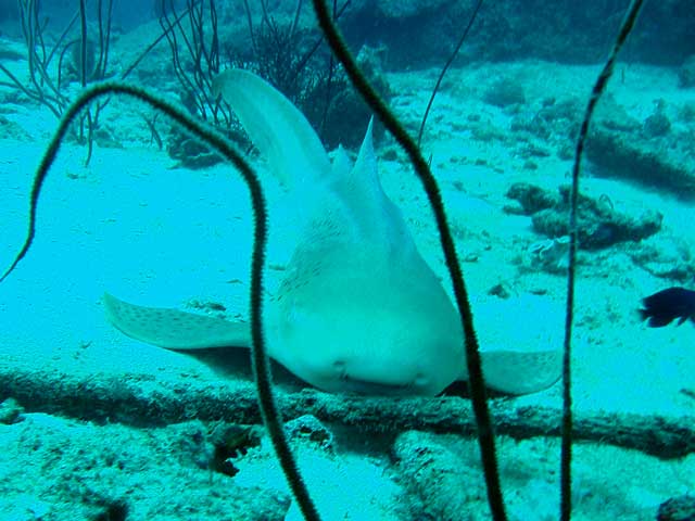流れの上手にみんなで泳いでいくと、トラフザメがお昼寝していました。われわれが近づいても全然逃げなかったので、みんな好きなアングルでパチパチしまくりました。