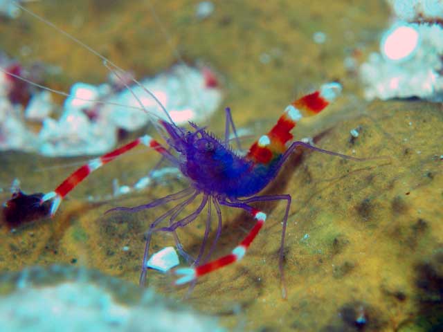 ガレバでは、名物のイエローやバイオレットのボクサーシュリンプに会えました。とっても美しいエビです。