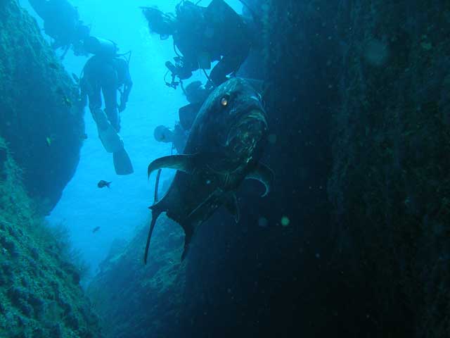 大きな水中トンネルを通ると大きな池に浮上できる世界的にも有名な地形のポイントであります。