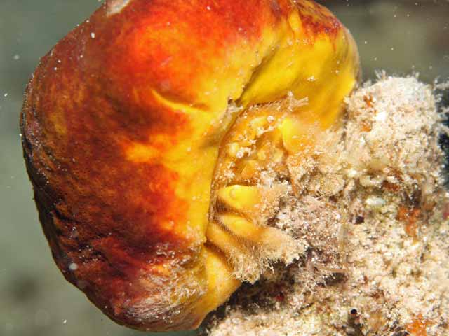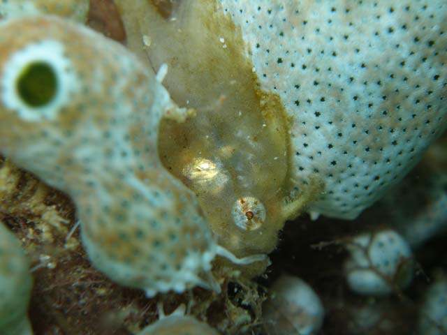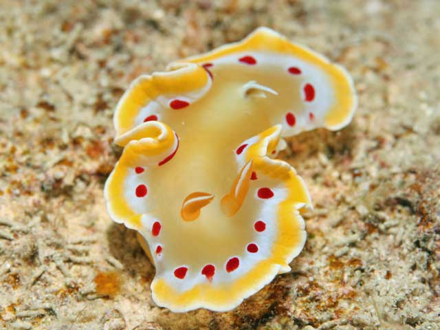根の上では、ミゾレウミウシやサラサウミウシなどのウミウシの仲間や、大きな海綿を被ったカイカムリ(カニの仲間)がユニークな姿を見せてくれました。