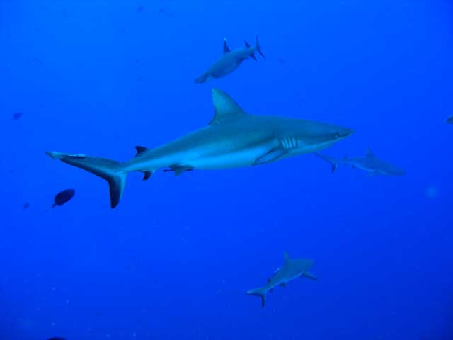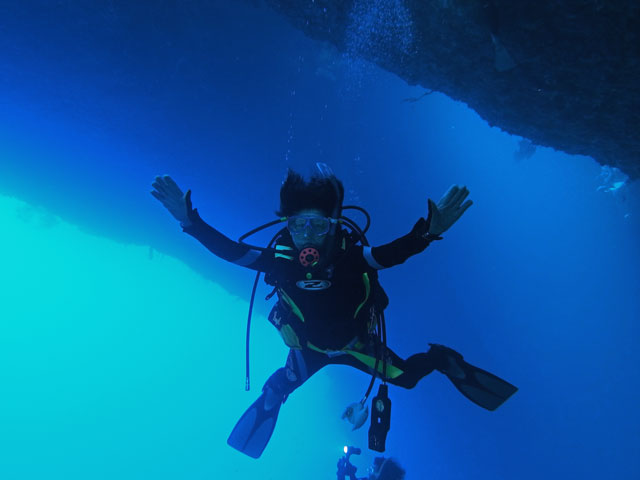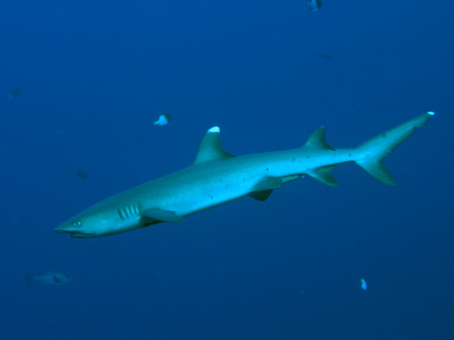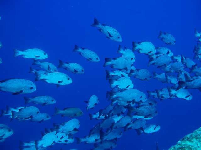 ラストダイブなので、水深は浅めにと10m前後のトンネルを抜けてドロップオフに出ると、いつものアカモンガラやマダラタルミやクロヒラアジやブルーと黄色のボディが鮮やかなウメイロモドキの群れやスミレナガハナダイのハーレムやグレイリーフシャーク、ホワイトチップ、アオウミガメやマダラトビエイなどがわれわれを見送リに?来てくれました(^^)