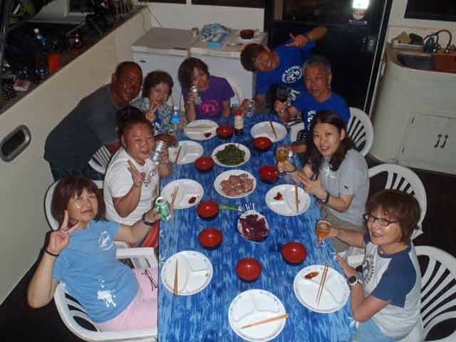参加者の皆様の水中写真や、パラオクルージングの風景、アフターダイビングの船上での宴会、陸上でのショッピングや宴会(夕食)のときの様子は、フォトギャラリーに掲載していますので、よければぜひ見て下さいね〜!(^^)v