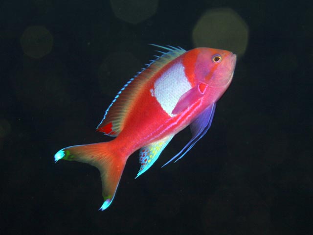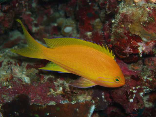 ここは、沖縄では珍しく-10mちょっとの水深でスミレナガハナダイの雄が見れるところなのです。