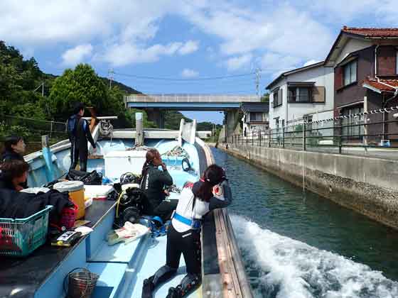 今回のお宿「三力丸」とダイビングショップのノア隠岐、「船引運河」を通ってさぁ!潜るで~!(^^)v