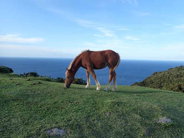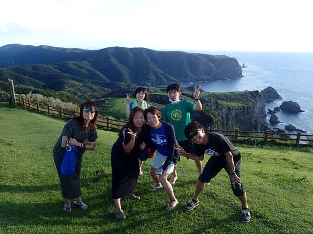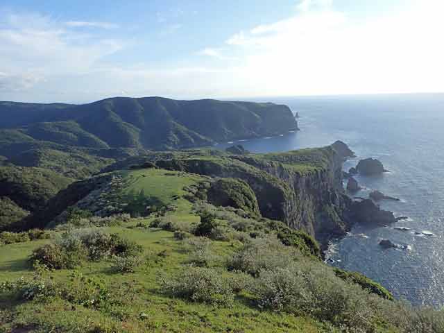 島の周囲は高さ257mの海蝕崖日本一の「摩天崖」など断崖絶壁と奇岩怪礁があちこちで見られ、それらが紺碧の海に映えて、本当に豪壮で且つ雄大な景観でした。